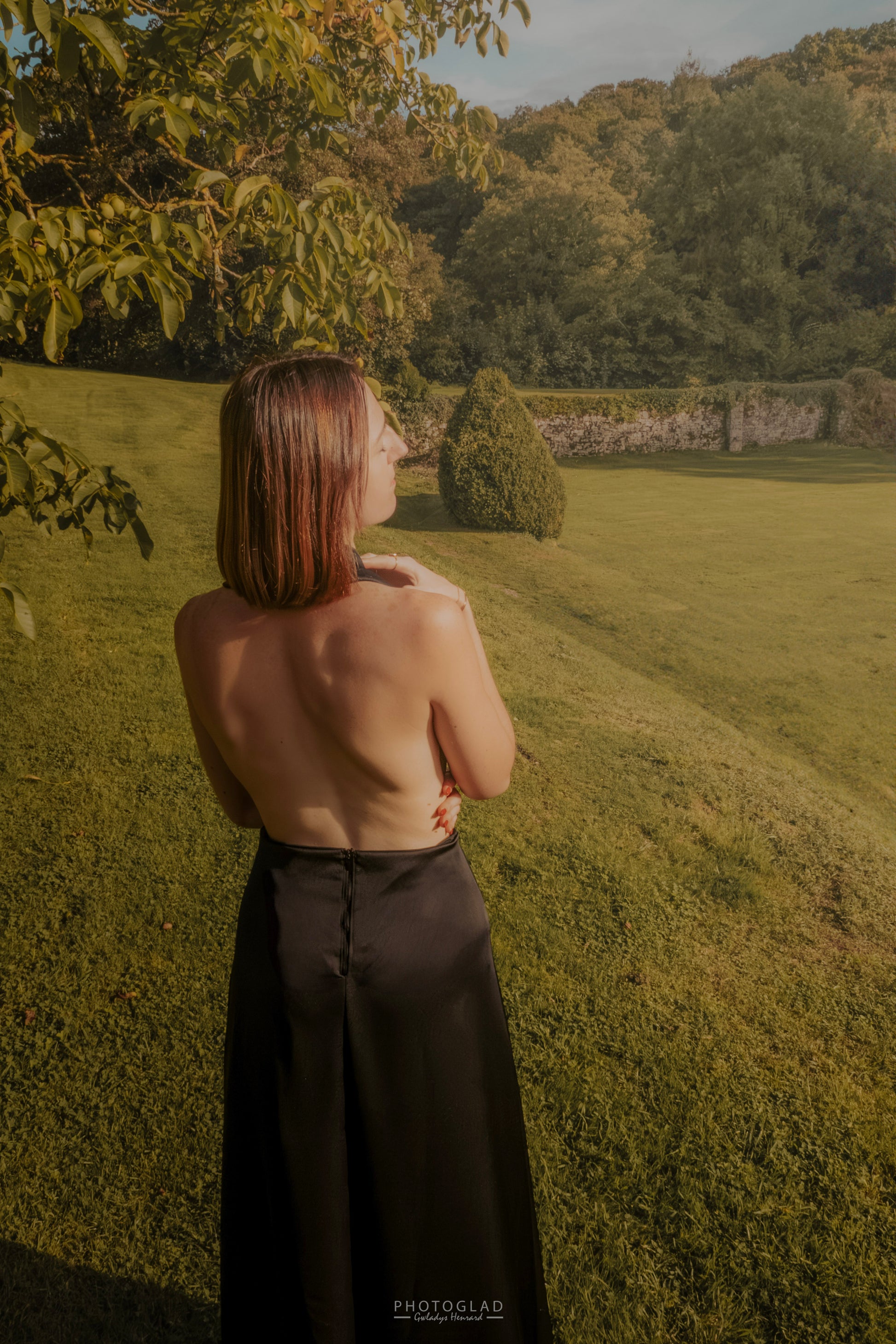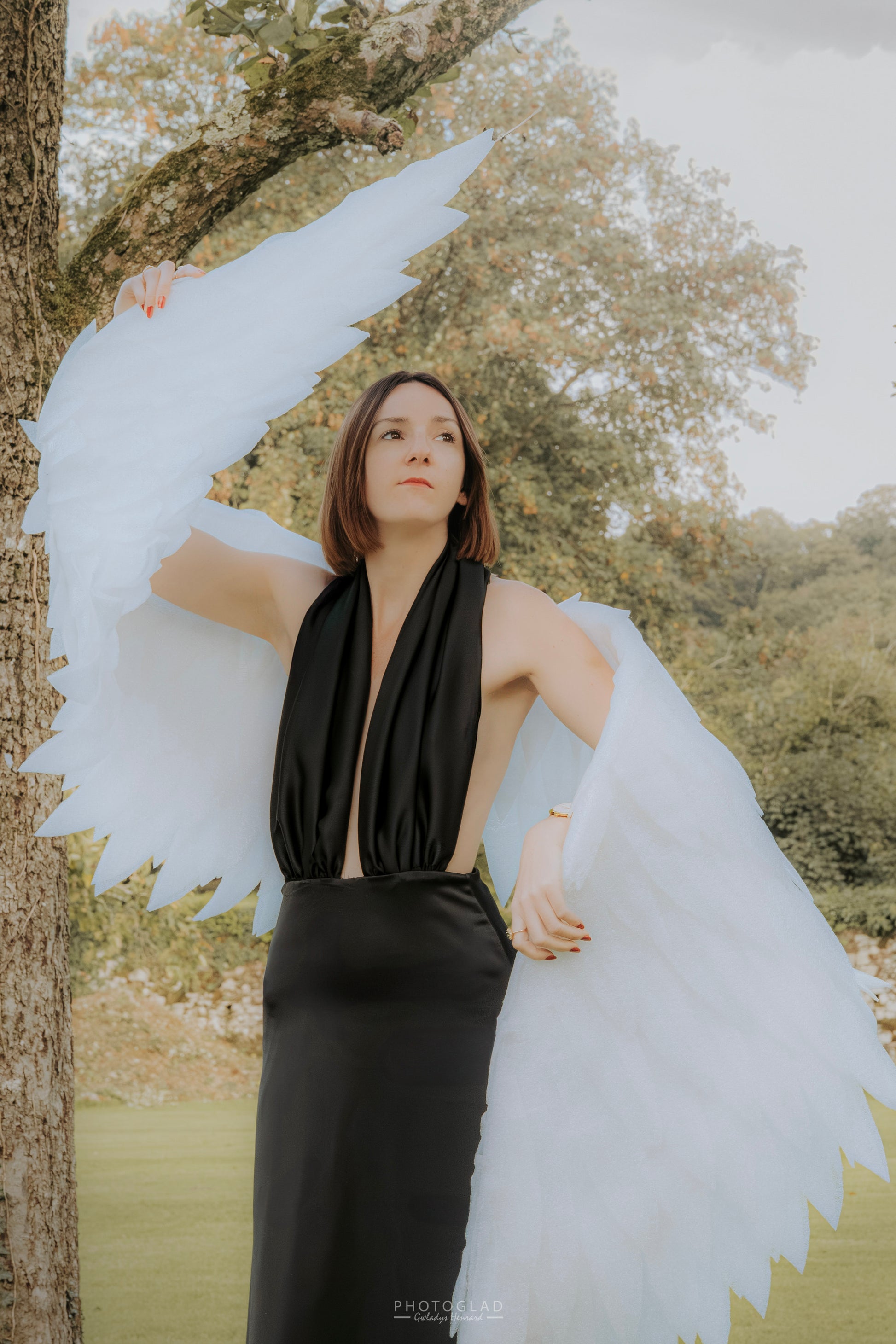 La robe de soirée noire par excellence. Confectionnée en tissu crêpe satin, cette pièce majestueuse présente un décolleté ultra-plongeant et une coupe dos nu intégrale. Sa silhouette longue et fluide garantit un style à la fois audacieux et intemporel.