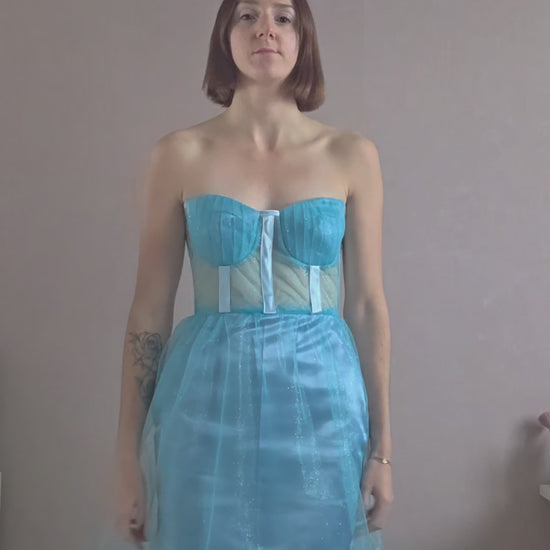 Faites sensation avec cette robe élégante en tulle bleu rehaussé de paillettes scintillantes, conçue pour sublimer vos plus belles occasions. Réalisée dans un tissu satin raffiné, elle offre une allure fluide et lumineuse. Sa doublure douce et confortable garantit un porté agréable, tout en préservant l’élégance et la sophistication.